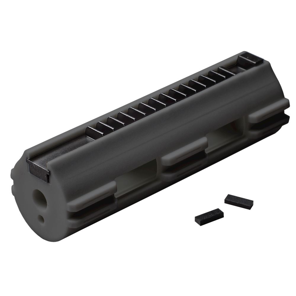 Pistone per repliche da softair alleggerito con corpo in tecnopolimero caricato fibra di carbonio e cremagliera con tutti i denti in metallo dotato del sistema brevettato ZERO-SHOCK (PM03CF)